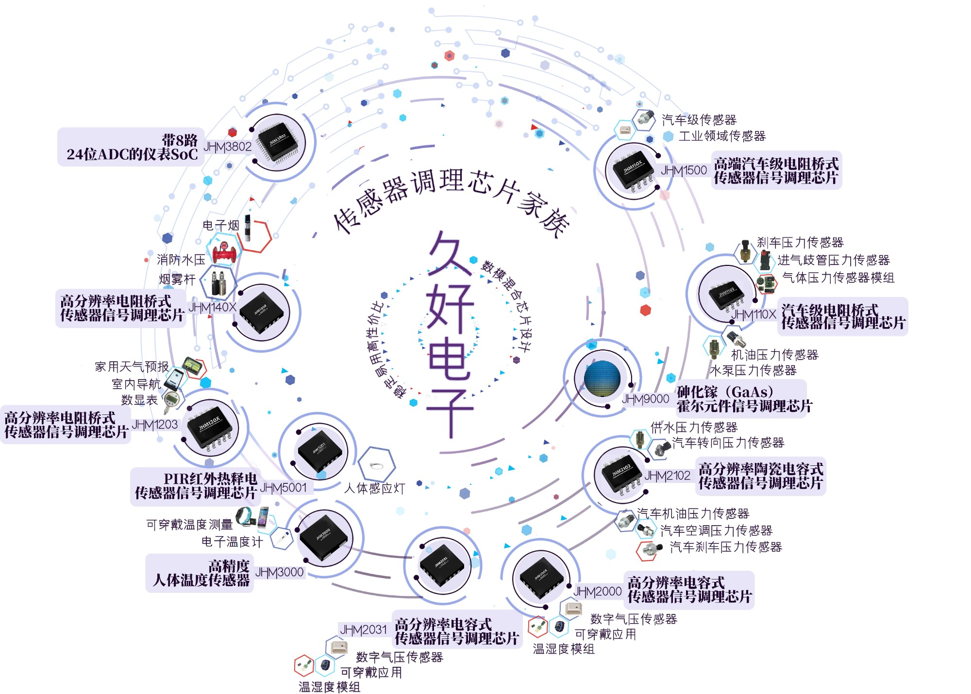 北京久好電子科技有限公司創立于2014年,核心創業團隊為一批清華集成電路校友。公司專注于數?;旌蟂oC芯片的設計開發,已量產的傳感器信號調理芯片系列已經廣泛應用于壓力、溫濕度、紅外熱釋電(PIR)、溫度和電流等傳感器領域,尤其是在車用壓力傳感器領域取得卓越成果。公司在超低功耗數?;旌霞呻娐吩O計、低功耗SoC系統設計、大批量量產系統與信號調理芯片的應用軟件開發等領域積累了豐富的經驗,能快速地為合作伙伴提供具有世界競爭力的芯片技術及完整解決方案。